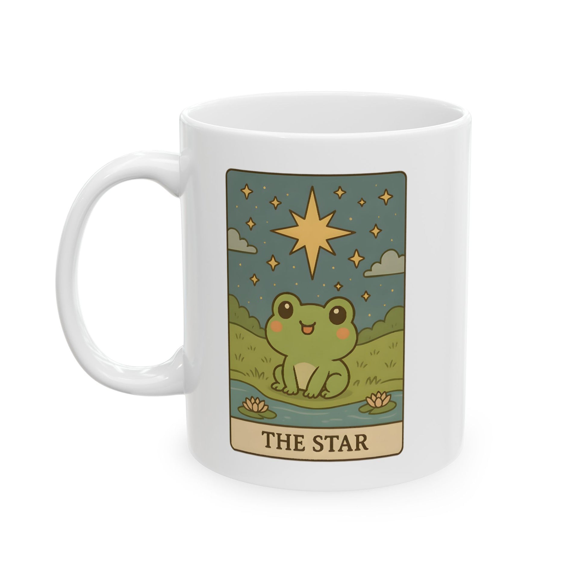 Adorable Tarotoads! "The Star" White Ceramic Mug | Whimsical Nature Ceramic Mug, Coffee Cup Gift, Eco-Friendly Drinkware, Adventure Vibes, Outdoor Lover's Mug