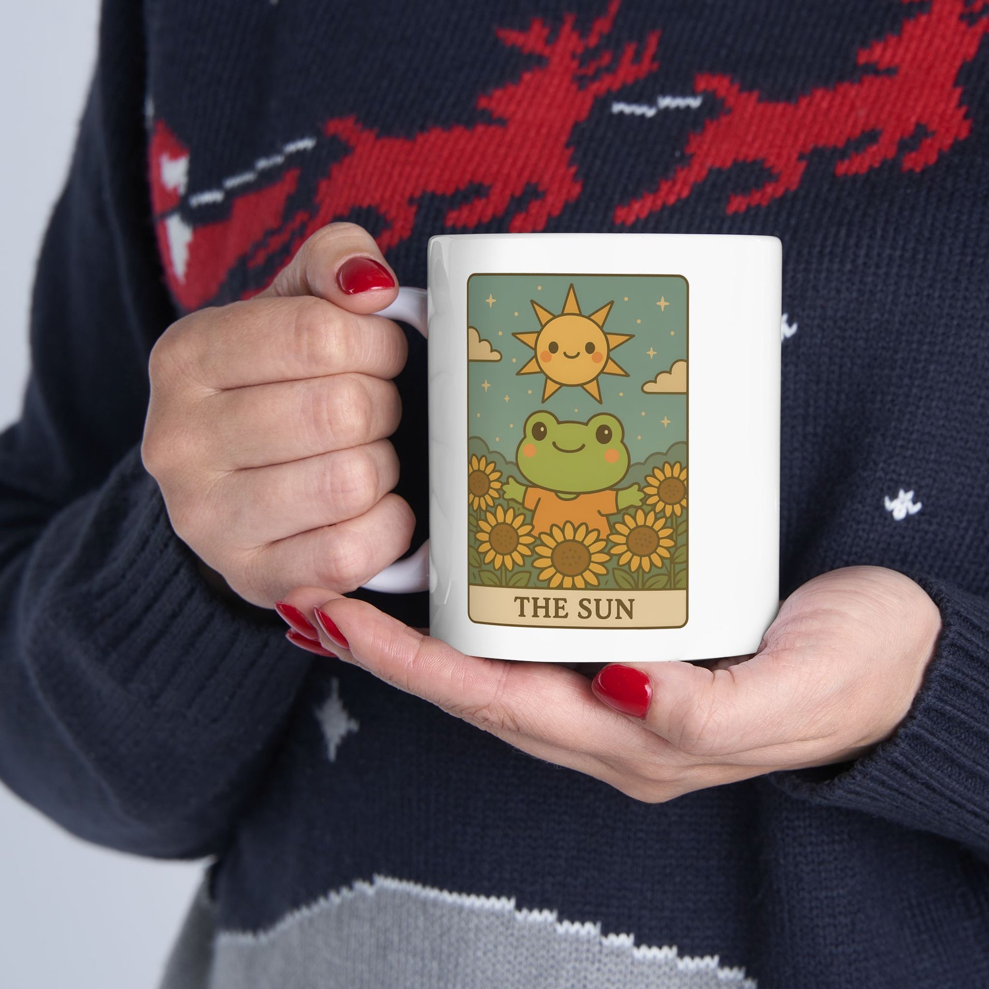 Adorable Tarotoads! "The Sun" White Ceramic Mug - Perfect Gift for Plant Lovers, Inspirational Coffee Cup, Eco-Friendly Tea Mug, Home Decor, Birthday Presents