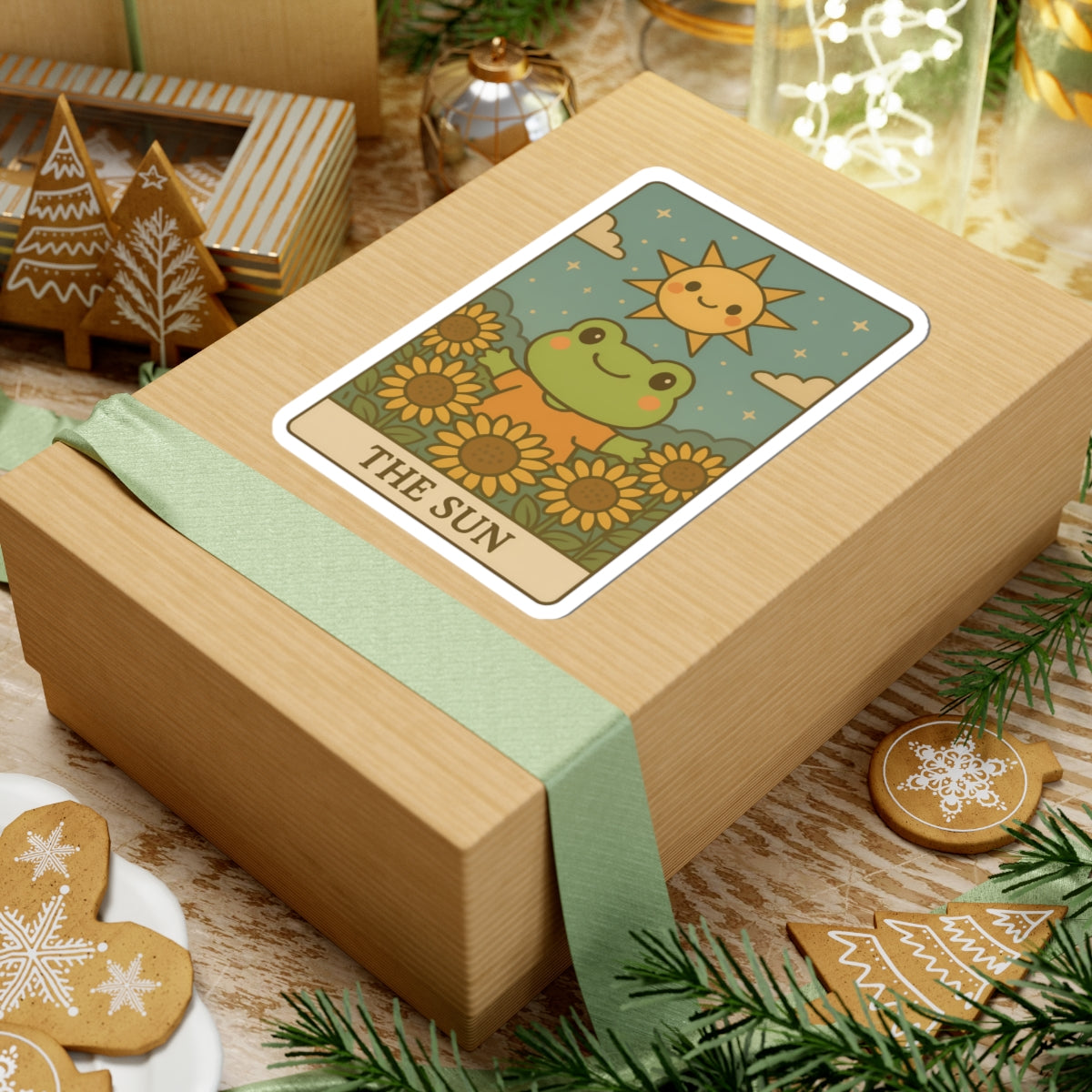 Whimsical Tarotoads! "The Sun" Kiss-Cut Sticker | Cute Sunflower Decal, Nature-Inspired Laptop Stickers, Happy Frog Art, Eco-Friendly Gift